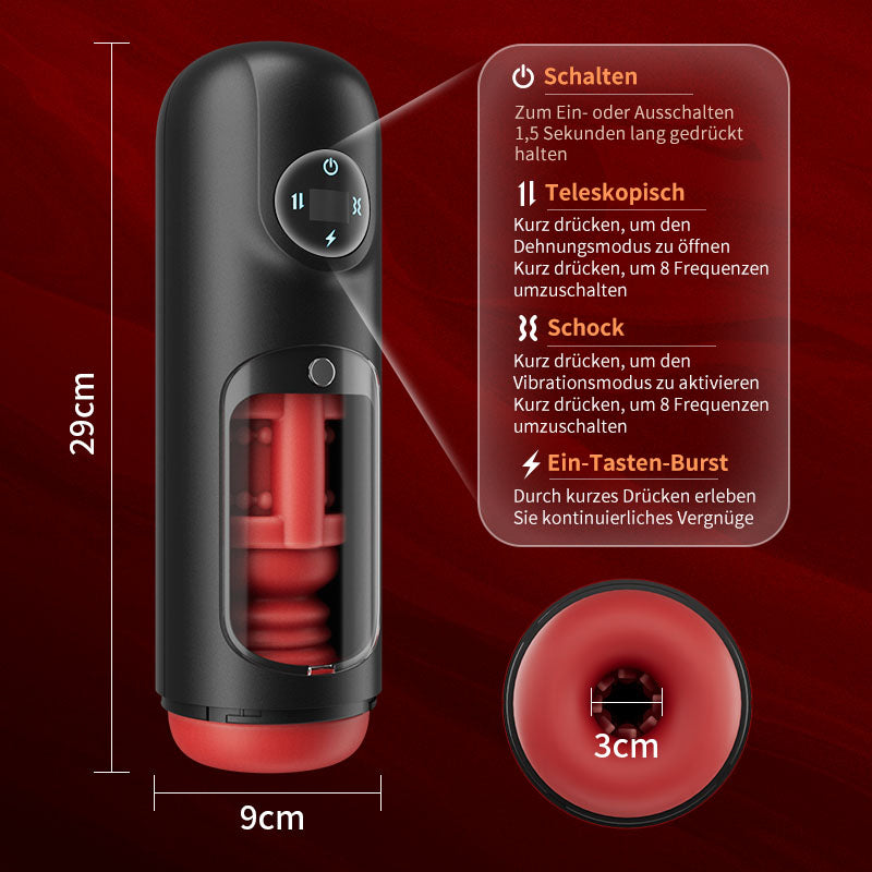 - Entfesseln Sie die Kraft des automatischen 4-in-1-Männermasturbators cupX: 8 Schübe, 8 Vibrationen, 1-Klick-Höhepunkt und 3D-Kanal.