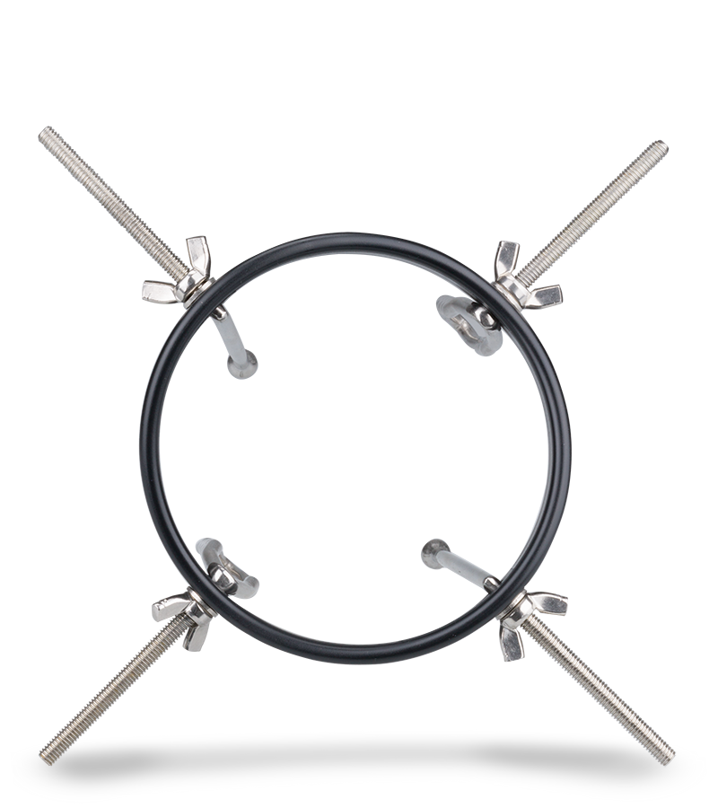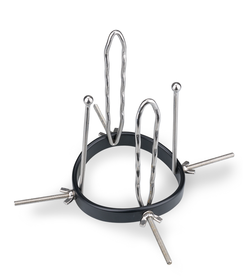 Der Durchmesser des PVC-Rings beträgt 11 cm. Die Stäbe aus rostfreiem Stahl haben eine einführbare Länge von 14,5 cm.