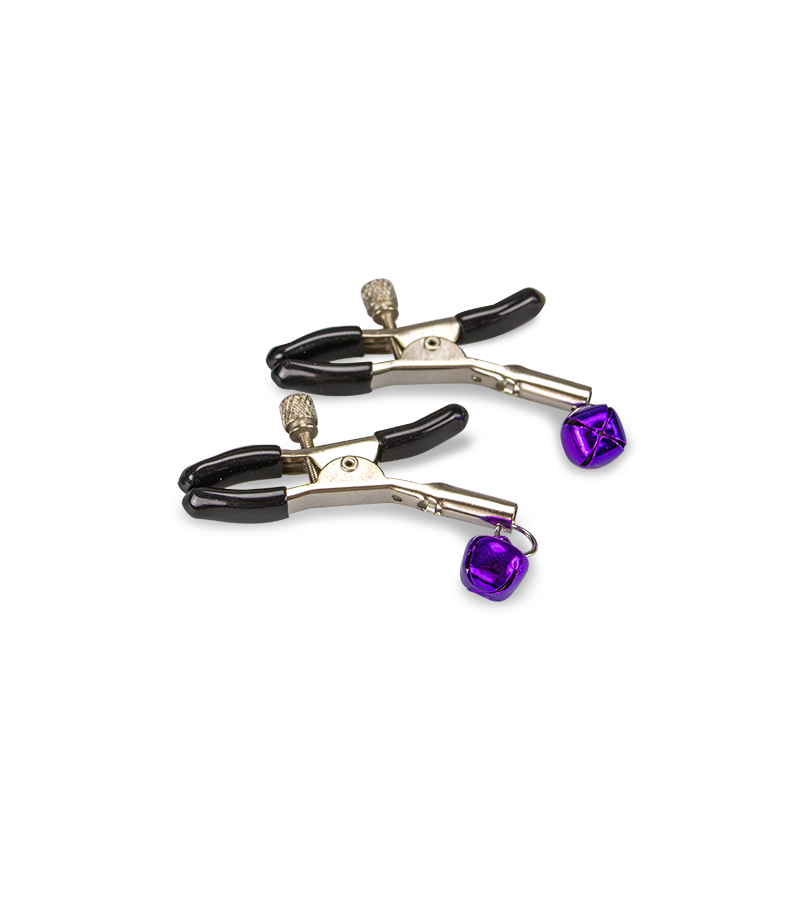 Ein Paar Nippelklammern mit Glocken: Die Nippelklemmen stimulieren Ihre Brustwarzen und machen sie noch empfindlicher. Die Klemmen sind verstellbar. Mit einer Stellschraube können Sie die Intensität des Schmerzreizes selbst wählen.