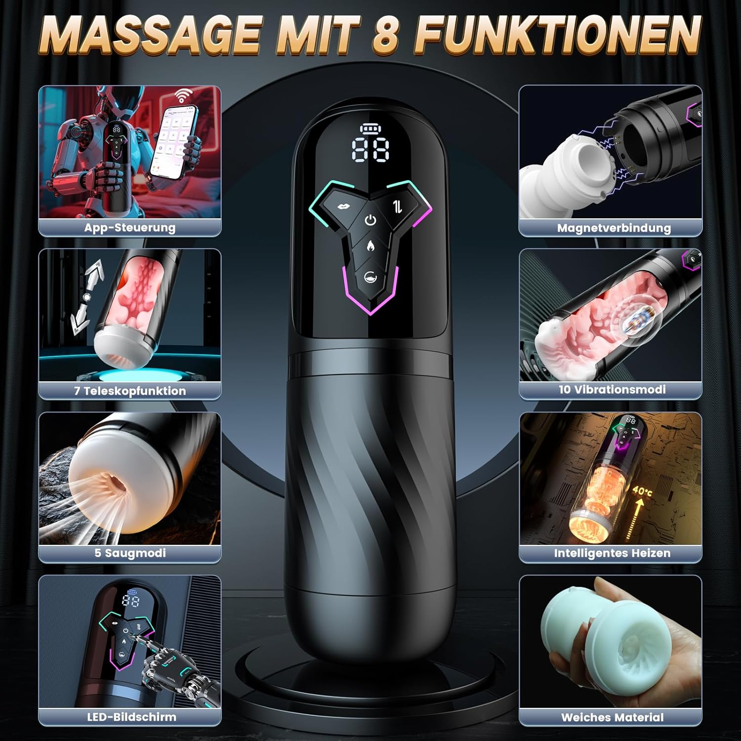 • 【Mehrfache Stimulationsmodi & Erwärmung für Höchsten Lustgewinne】Mit der perfekten Kombination aus 7 Stoß-, 10 Vibrations-Leck-Modi und 5 Saugstufen können Sie vielfältige Empfindungen für abwechslungsreiche intime Erlebnisse erkunden. Durch innovative Heiztechnik kann das Innere des Sex Spielzeug für die Männer auf Ihre Wunschtemperatur erwärmt werden – mit nur einem Toy erleben Sie intensivste Lust, als würden Sie Begegnungen mit verschiedenen Partnern genießen.