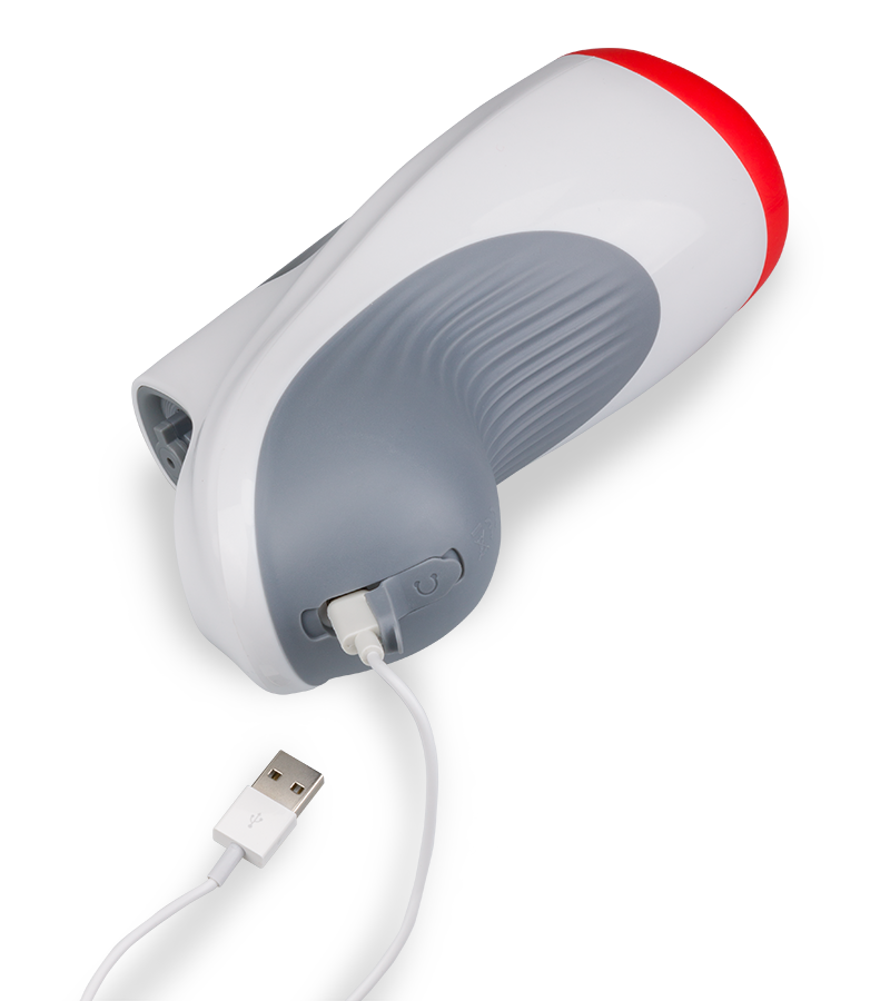 Der Masturbator ist ein echtes High-Tech-Sextoy, das alle Liebhaber von automatischen Masturbatoren begeistern wird. Die Öffnung mit dem leicht gekrümmten Lusttunnel erinnern an einen weichen Mund. Die zahlreichen Noppen und Erhebungen auf der Innenseite und das weiche, elastische Material vermitteln ein realistisches und gefühlsechtes Blowjob-Feeling. Sobald Sie den Penis in die Öffnung einführen, beginnt der Masturbator die Luft nach hinten einzuziehen und bereitet Ihnen dadurch ein intensives Lusterlebnis. Die Saugfunktion stoppt erst, wenn Sie den Penis wieder aus dem Lusttunnel ziehen. Für die Vibrationen verfügt der Masturbator über 2 Motoren. Der eine sitzt vorne und erzeugt konstant Vibrationen, während sich der zweite im hinteren Bereich erst dann einschaltet, wenn der Penis komplett eingeführt ist. Insgesamt stehen Ihnen 10 unterschiedliche Modi zur Verfügung. Wenn Sie während des Blowjobs nicht auf sinnliches Stöhnen verzichten möchten, schließen Sie einen Kopfhörer an den Masturbator an und lassen Sie sich überraschen!