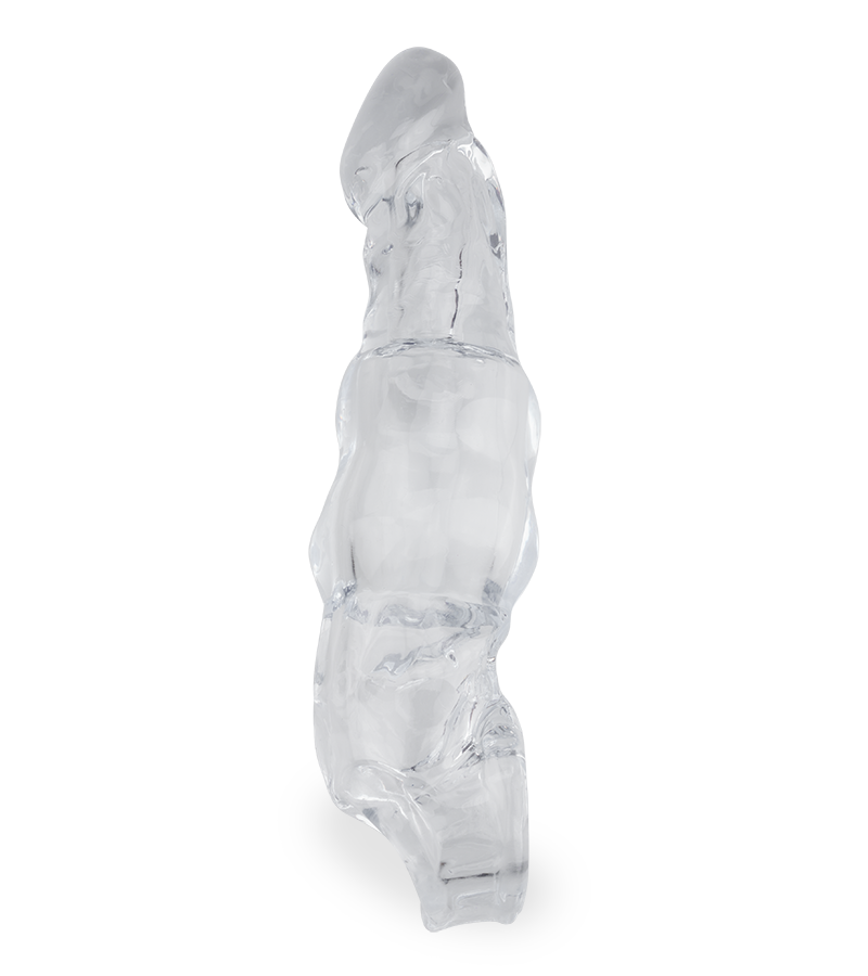 Gönnen Sie Partnerin oder Partner ein intensiveres Empfinden beim Sex mit der durchsichtigen Penishülle mit Hodenring Gordon!