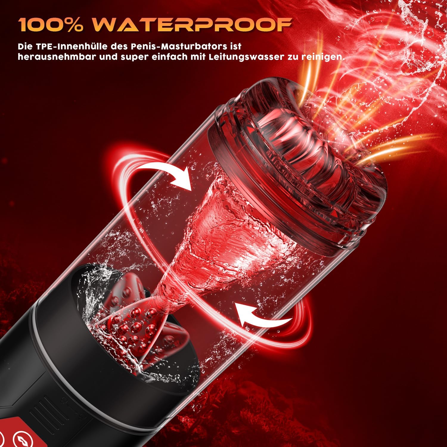 - 🍖【100% Wasserdicht Masturbieren für Männer】Dieses Sexspielzeug für Männer bietet nicht nur 7 Modi von schiebenden & rotierenden, saugenden & vibrierenden & leckenden Funktionen, sondern sein vollständig wasserdichtes Design ermöglicht es Ihnen auch, abwechselnd heiße und kalte Wassermassagefunktionen zu genießen. Die Sexspielzeug ist sehr leicht zu reinigen und kann für eine echte Reinigung komplett in Wasser getaucht werden, was sicherer und hygienischer ist!