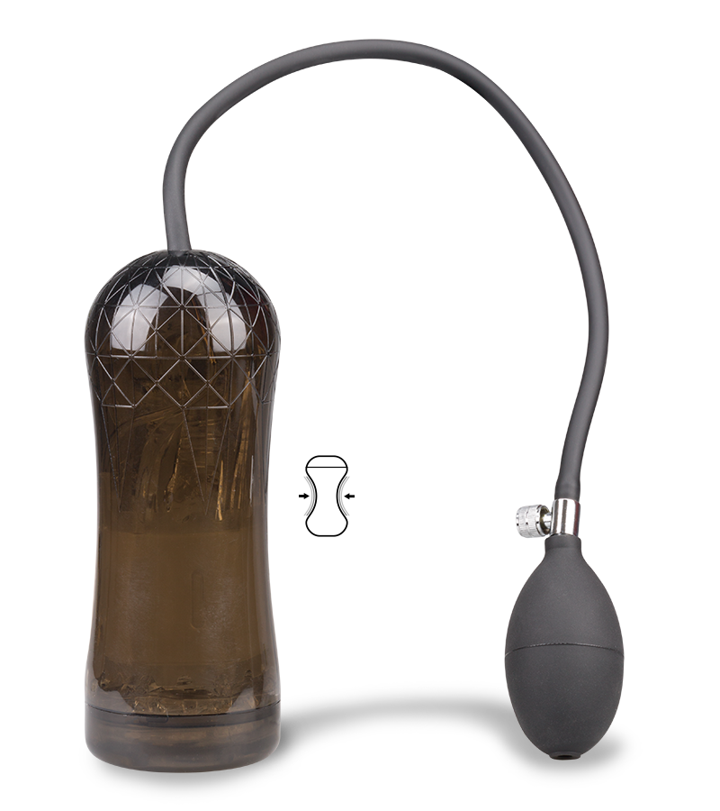Das Sleeve, das sich im Gehäuse des Masturbators befindet, ist aus weichem TPR gefertigt und mit Noppen ausgekleidet. Sie stimulieren und massieren den Penis, wenn Sie ihn in die Öffnung gleiten lassen. An der Öffnung befindet sich ein aufblasbares Kissen, das mit der Handpumpe nach Belieben aufgepumpt werden kann. Dadurch wird ein sanfter stimulierender Druck auf Ihr bestes Stück ausgeübt. Mit dem Ventil können Sie den Druck anschließend wieder ablassen.