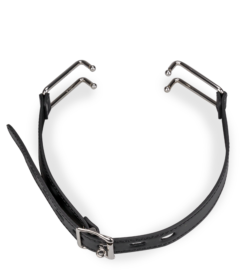 Dieses BDSM-Accessoire besteht aus einem schmalen Kunstleder-Gurt, der um den Kopf gelegt wird. Die beiden Haken aus Metall werden in die Mundwinkel eingehängt und zwingen so dazu, den Mund komplett geöffnet zu halten. Der Gurt des Mundspreizers lässt sich für eine optimale Passform und eine variable Intensität auf 8 Weiten einstellen.